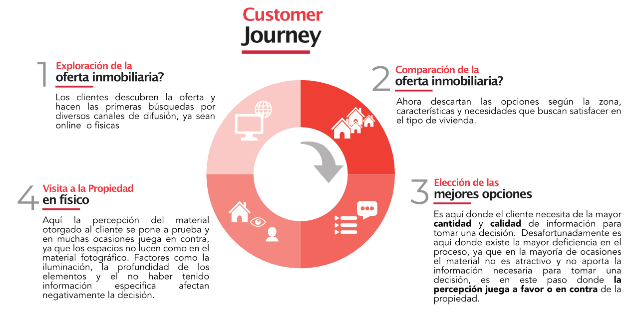 En el "Costumer Journey" del sector inmobiliario detectamos una problemática que en mobit nos dimos a la tarea de resolver mediante un producto especialmente diseñado para la venta y renta de inmuebles integrando tecnología y Marketing Audiovisual