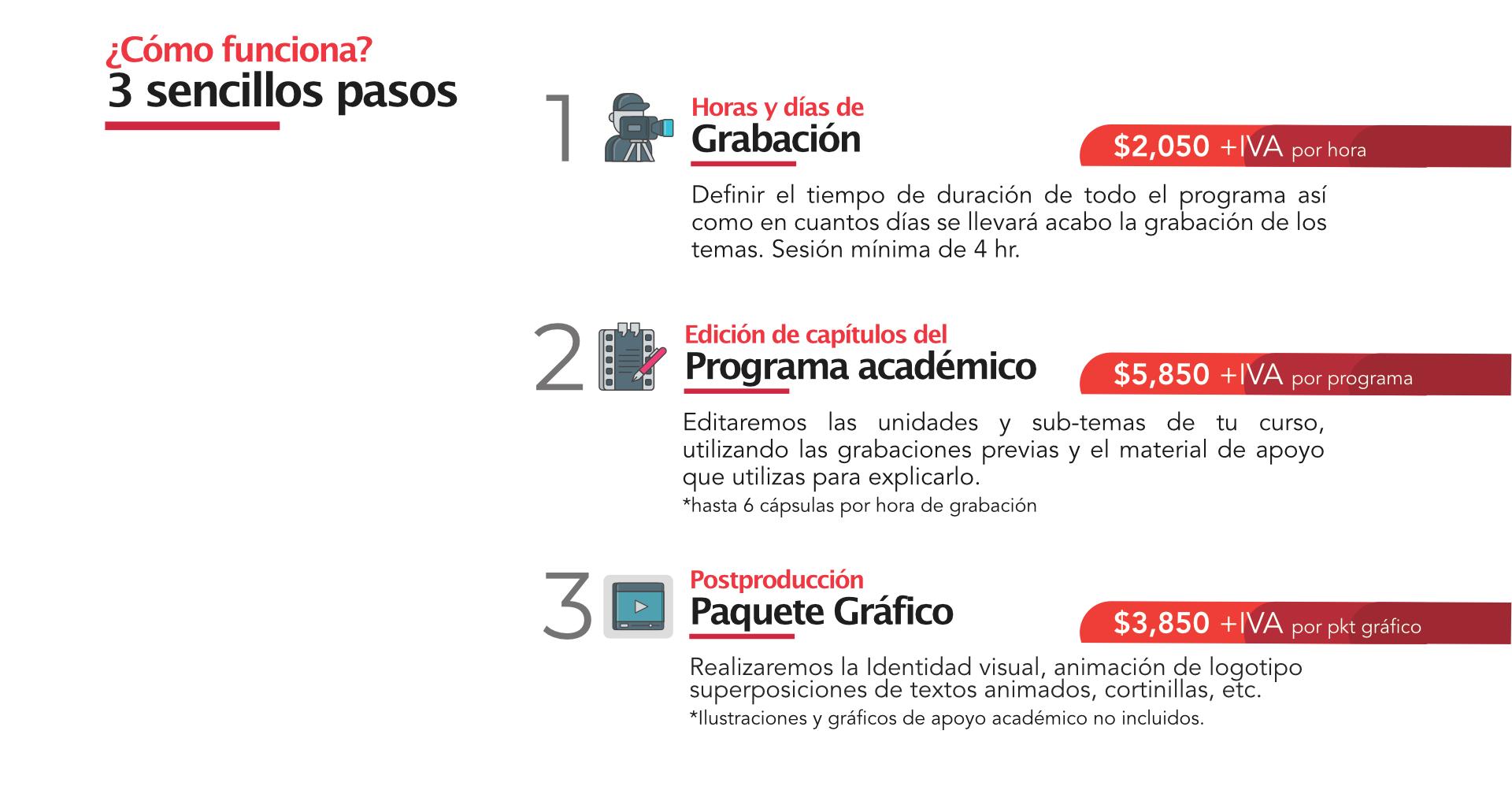 La calidad de producción conlleva muchas variables y para lograr productos académicos de éxito, se debe producir con calidad. Lamentablemente no todas las instituciones educativas cuentan con el equipo de producción necesario ni la experiencia para llevar a cabo esta importante tarea.